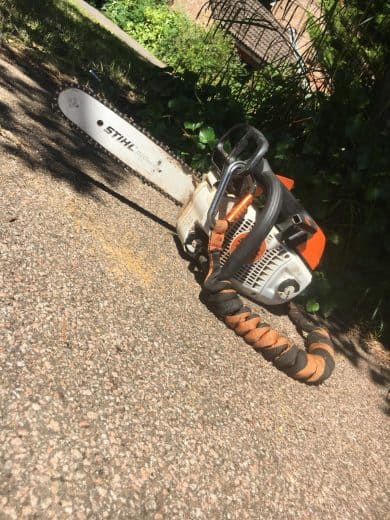 On many of our sites, the basic equipment we would use to maintain a tree would be a hand saw (We like Silky) and throw linesto which allows us to reach any difficult areas. For larger diameter cuts we would use a top handle chainsaw, and for those hard to reach places we would use a pole saw.